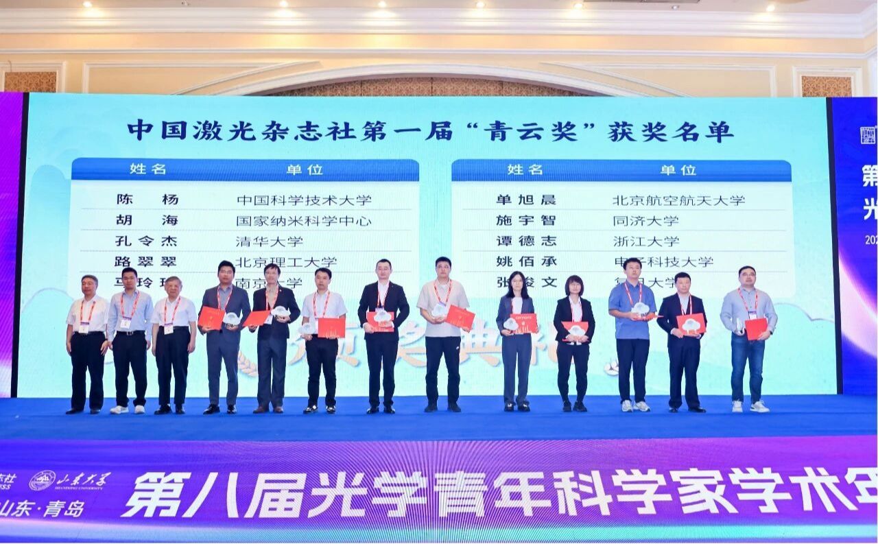 喜报|同济大学精密光学工程技术研究所施宇智教授荣获中国激光杂志社首届“青云奖”