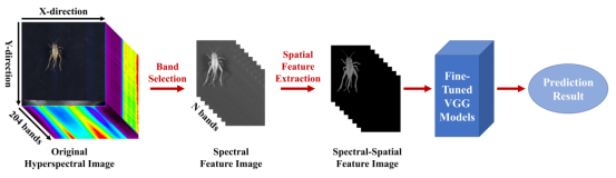 Figure 1. Preprocessing of HSI and automatic classification of insect species based on feature spectral distillation.