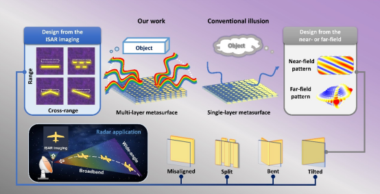 To address this issue, the research team propose a nontrivial illusion concept based on the inverse synthetic aperture radar (ISAR) imaging process. By processing the scattering information over a broadband and wide-angle range, a 2D ISAR image containing important feature information such as the shape and position of the target can be obtained, enabling direct target identification. The relationship between the broad-band phase dispersion of meta-atoms and the position of the illusions in ISAR image is constructed. By designing the size parameters and spatial positions of the unit structure, the position of the illusion structure in the ISAR image can be precisely and freely controlled.