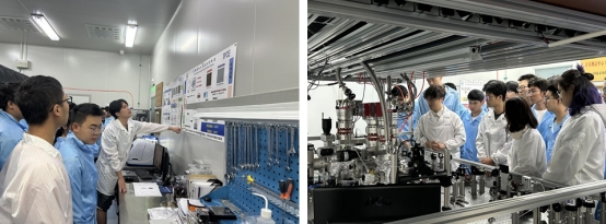 在多维光学显微实验室,同学们参观了超高空间分辨与超快时间分辨光学表征平台,在学长学姐的深入讲解下,了解了光学衍射极限及其突破、超快动力学技术、多维光学显微等物理概念,理解了前沿光学中的物理原理。同学们表示,从实验室研究者们对高精度光学表征的追求中感受到了浓郁的科研氛围与精益求精的科研精神。