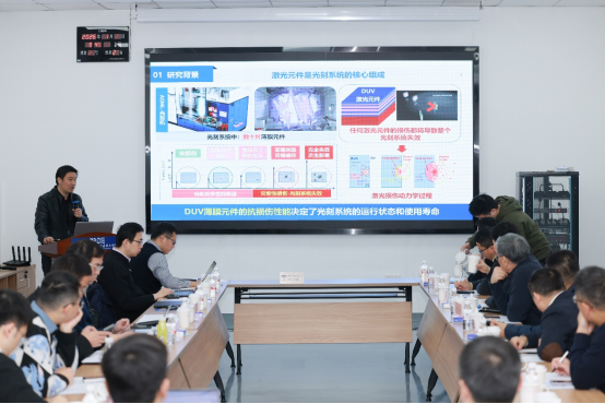 会议听取了平台年度建设情况与科研进展汇报。焦宏飞教授代表平台负责人王占山教授作2025年度建设总体汇报,系统介绍了平台在基础条件建设、团队建设、对外服务及标志性成果等方面取得的重要进展。马彬教授、黄秋实教授、钮信尚助理教授和汲小川博士后分别围绕准分子激光损伤测量关键技术、高性能X射线准直部件关键技术、多功能强激光薄膜性能提升、深紫外光学薄膜器件关键技术等方向作专题报告。