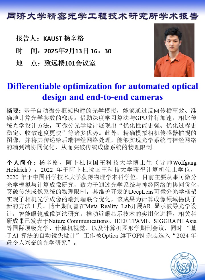 【学术报告】KAUST杨辛格:Differentiable optimization for automated optical design and end-to-end cameras