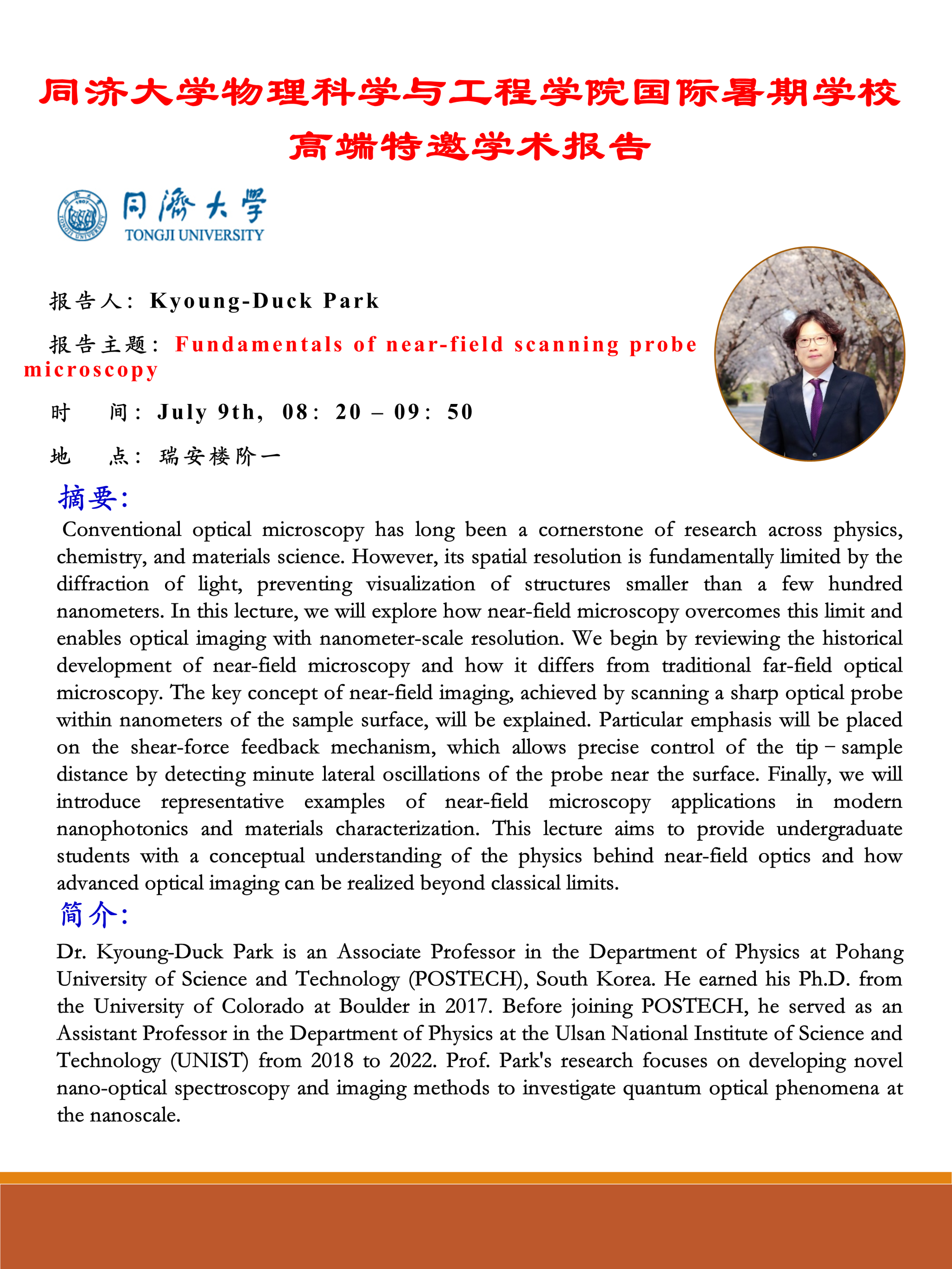 【学术报告】Kyoung-Duck Park:Fundamentals of near-field scanning probe microscopy