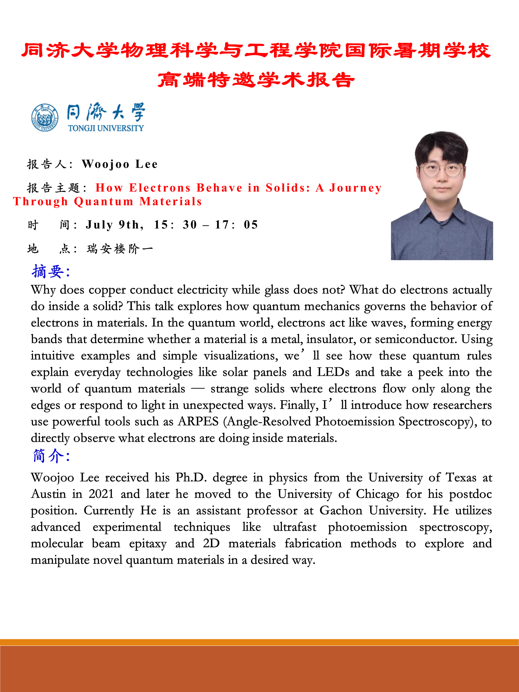 【学术报告】Woojoo Lee:How Electrons Behave in Solids:A Journey Through Quantum Materials