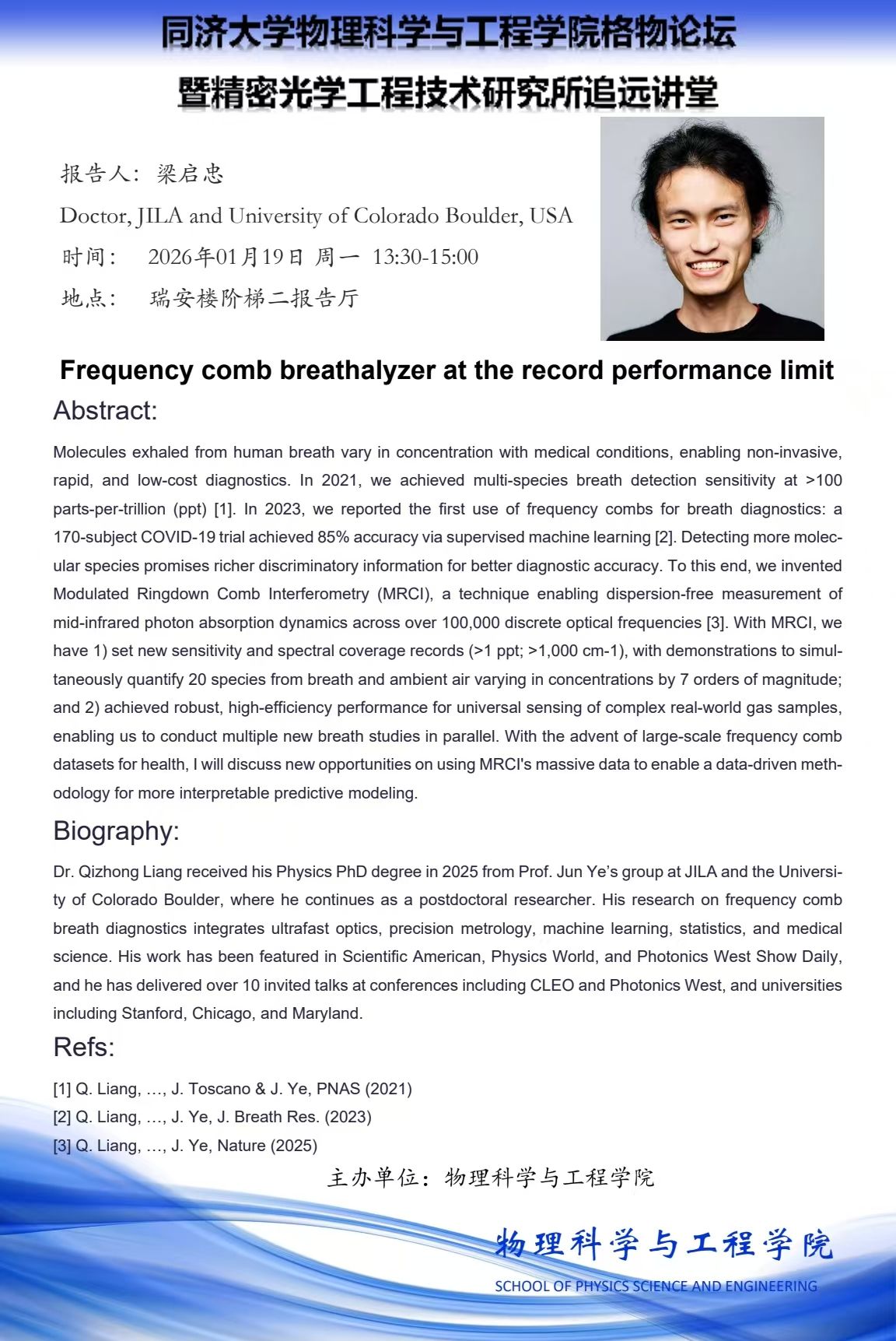 【学术报告·追远讲堂】梁启忠:Frequency comb breathalyzer at the record performance limit