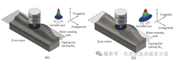 离子束修形(Ion Beam Figuring, IBF)是高精度光学制造中最具代表性的确定性精修技术之一,依靠离子束物理溅射实现亚纳米级的材料去除。随着同步辐射和X射线自由电子激光装置的快速发展,长条形X射线反射镜对面形误差与斜率误差提出了越来越严苛的要求。传统IBF通常采用旋转对称的近高斯圆束斑;当反射镜面形进入纳米级高度误差和百纳弧度级斜率误差时,束斑往往要缩小到毫米量级,也显著拉长了大尺寸镜面的加工周期,效率与精度之间的矛盾日益突出。