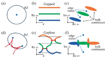 同济大学贾宏伟博士与上海大学胡静博士合作研究发现:在具有时间-空间对称性的非厄米一维系统中,虽然奇异点简并导致带隙闭合,但在能带完全重叠的情况下依然存在拓扑边缘态(图1d-f)。这一重要发现突破了"必须存在带隙才能实现拓扑保护"的传统理论框架。