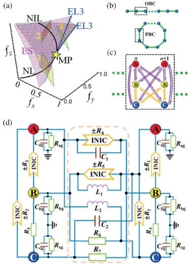 研究团队通过精心设计的非互易拓扑电路,在实验中成功观测到这类新型边缘态。实验电路精确模拟了基于燕尾突变奇点构造的一维无带隙系统,验证了边缘态在能带闭合情况下的稳定性(图2b-d)。