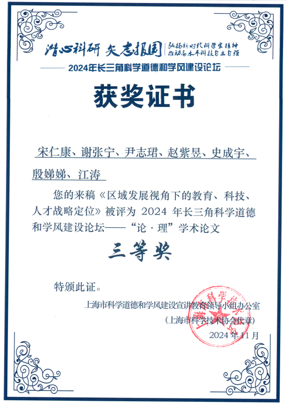 近日,由上海市科协、上海市教委作为指导单位,由上海市科学道德和学风建设宣讲教育领导小组办公室、上海市学位委员会办公室主办的2024年长三角科学道德和学风建设论坛征稿活动公布获奖名单,我院师生混合第十党支部投稿作品获“论·理”学术论文二等奖1项、三等奖1项,获“务·实”工作案例二等奖1项,实现了该赛事奖项的新突破。